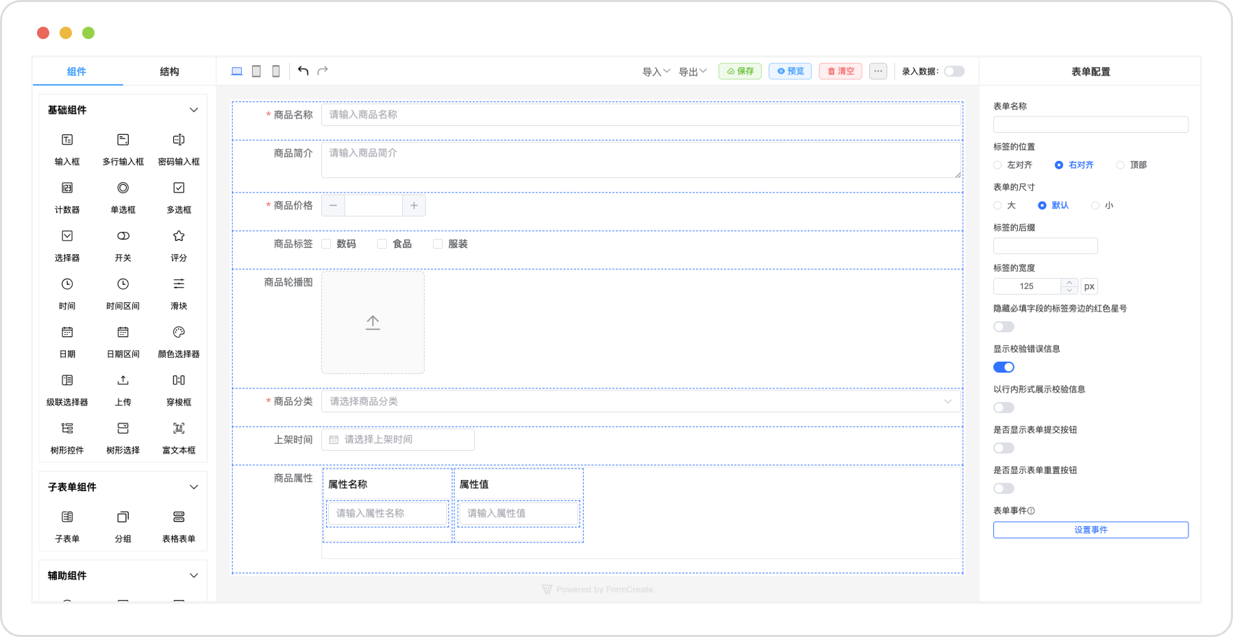 FcDesigner is an open-source, low-code visual form designer for Vue. Build forms quickly with drag-and-drop, boost productivity, and save development time. Used across government systems, OA platforms, ERP systems, e-commerce sites, and workflow management tools.